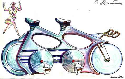| № | Тип 1-местного велосипеда | Тип соответствующего тандема | ![]() Рисунок Сергея Охлябинина (акварель), автора книги - "Давай изобретём велосипед!" Барон фон Драйз ездил на аналогичном 1-местном самокате в 1817г |
