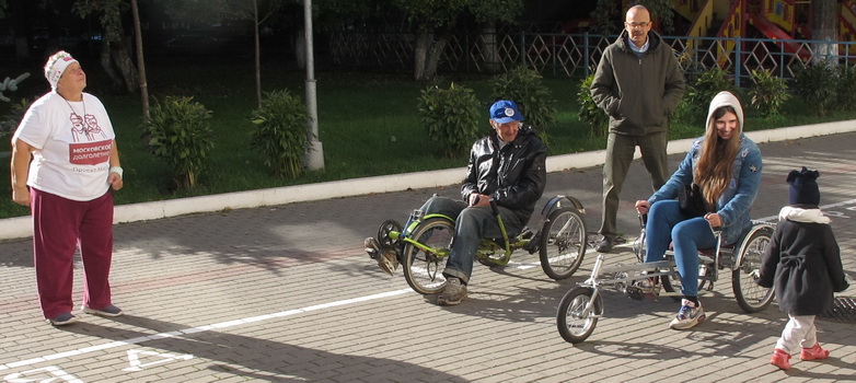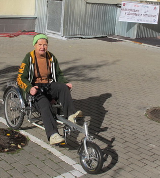 Он привёз 3 веломобиля и предлагал покататься. Перед поездкой проводил инструктаж: а) устройство веломобиля; б) Правила безопасного движения. в) Физнагрузка при педалировании - польза для здоровья. Жизнь показала, что если проходящего человека не окликнуть и не пригласить покататься, то он пройдёт мимо. Но Геннадий Сергеевич и Дарья приглашали людей, предлагали попробовать покрутить педали. Люди с недоумением останавливались, колебались, а потом многие решительно садились и ехали. С азартом делали круг за кругом вокруг здания по двору и теперь уже их надо было останавливать. Практика показала, что людям нравятся такие поездки. Жаль, только мало хороших красивых и удобных веломобилей. В этом проблема. И хранить их негде. Для всего этого нужна помощь. Видео Ионова Ирина Валентиновна Немногие соглашались на регистрацию (ФИО, тел.), и тем более, фотографироваться. Это надо учитывать. Собрать постоянную группу для занятий - тоже сложно. Большое спасибо Дарье Борисовой - мотор-человеку, которая, своей позитивной энергией зарядила окружающих, и это помогло провести успешное мероприятие. Погода была хорошая, обстановка - благожелательная. Игорь Шубин постоянно и внимательно помогал пользователям осваивать веломобили. Ему также большое спасибо. Ну и, конечно, СуГен - Суздальцев Геннадий Сергеевич, который и был инициатором этих занятий. Он долгие годы вкладывает свою душу в пропаганду и продвижение веломобилей для всех. ---------------------------- Танец в паре На старте Дарья и СуГен Дарья на курпус впереди. Но СуГен едет без рук, руля ногами. Дарья обогнала на 2 корпуса. Веломобиль - это здорово! Надо аккуратнее на вираже! Вкусный чай в красивой трапезной. В парке Сосенки. Смотрим налево и напрво на перезде По домам